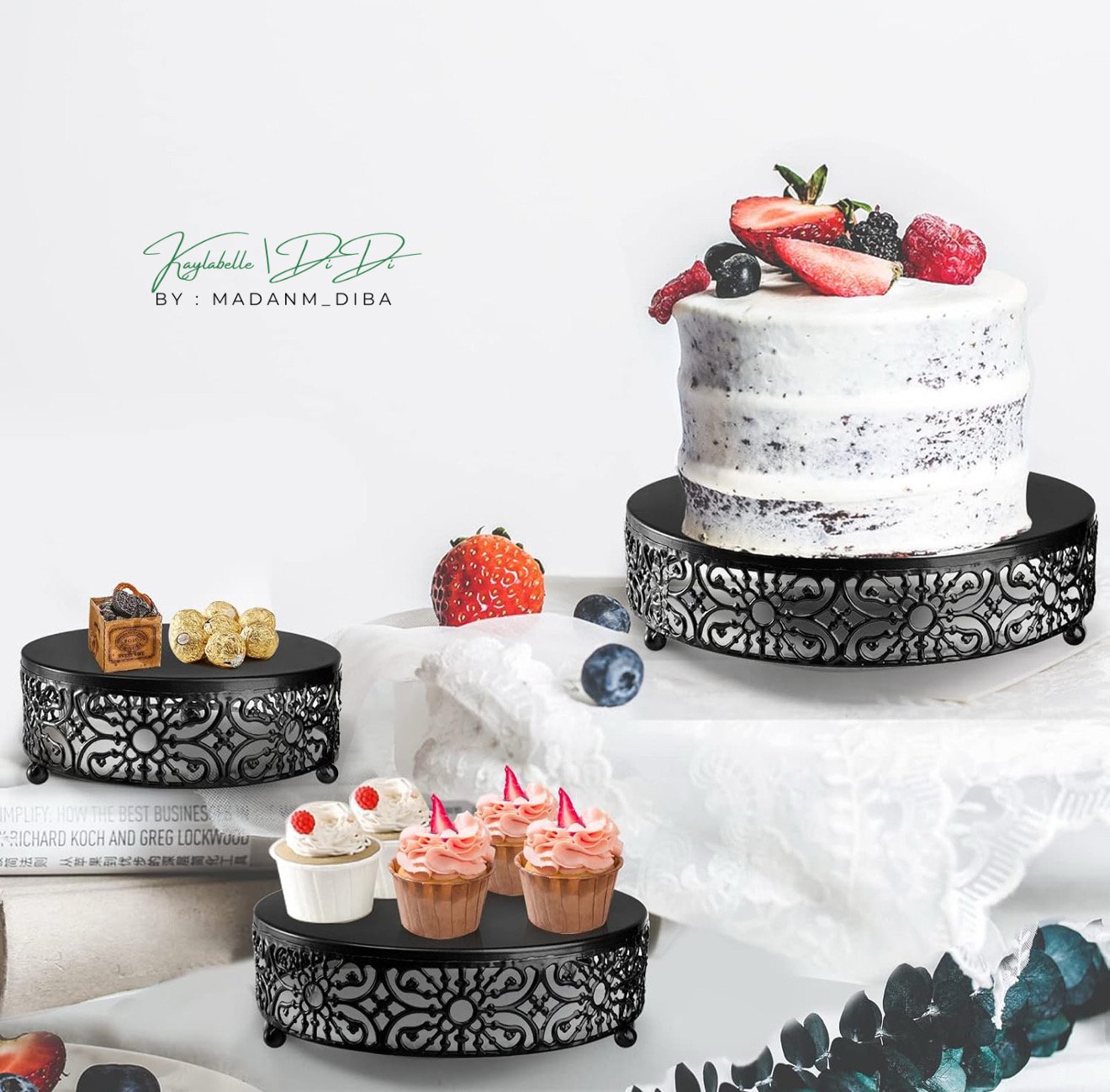 - Material - The cake stand includes a set of 3 pieces, made from high-quality metal.