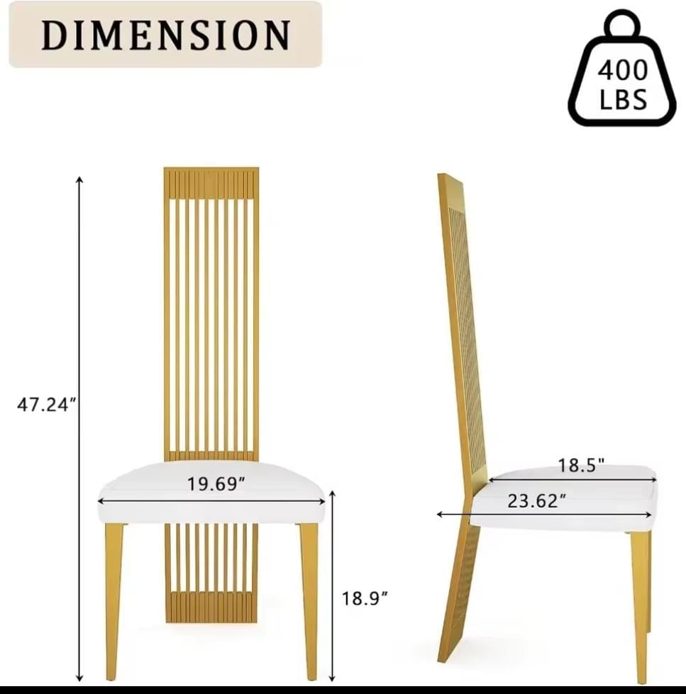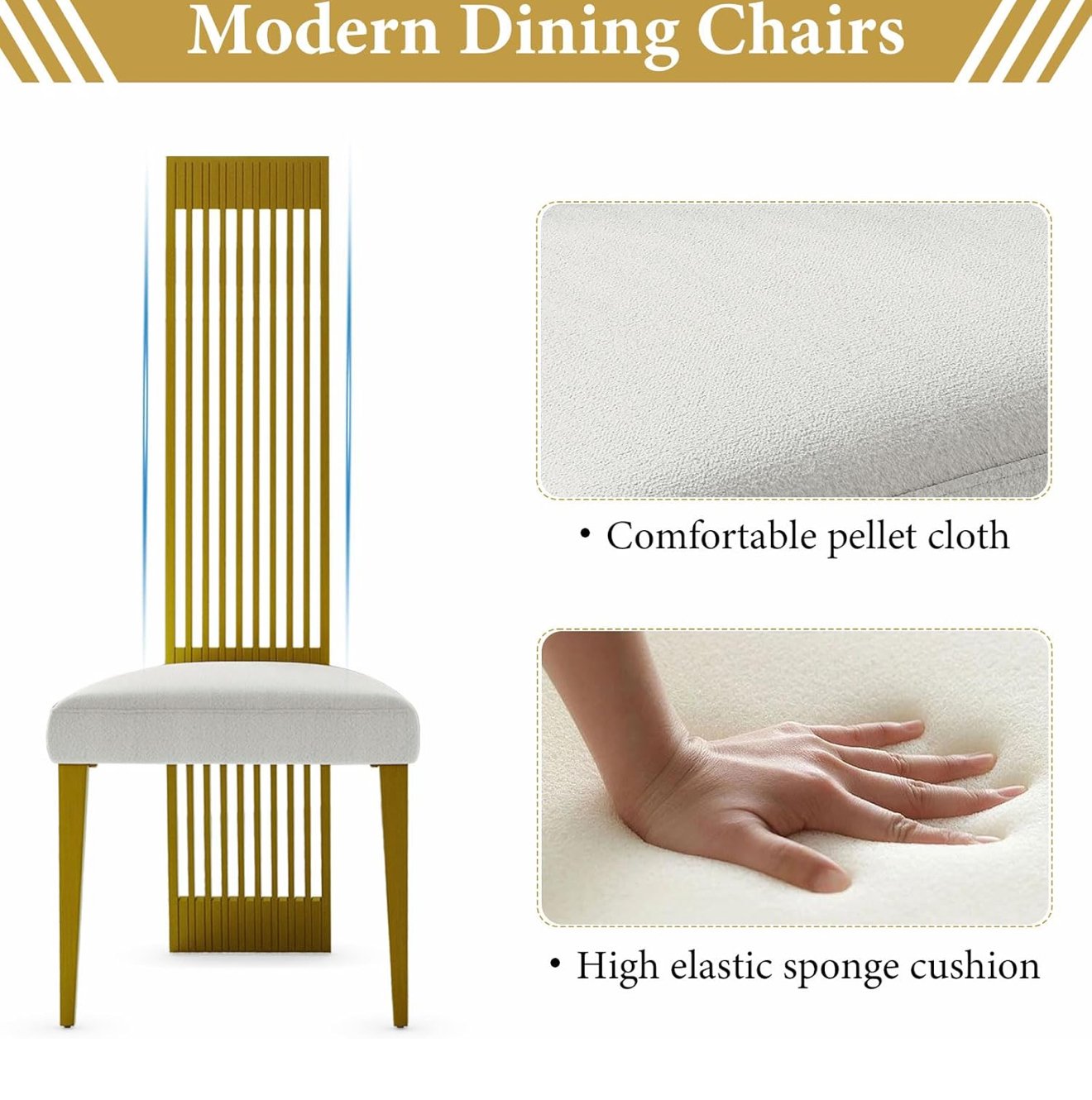 - 【Sleek Piano Key-Inspired Design】Elevate your space with a touch of artistic flair! The curved stainless steel backs mimic iconic piano keys, blending gold and white tones for a contemporary dining chair. This artist design adds sophistication to casual and formal settings alike.