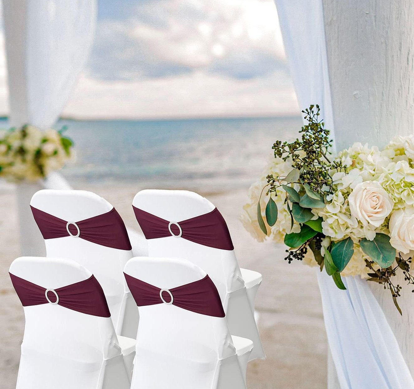 - PREMIUM MATERIAL&ACCESSORIES:Comfortable and natural feel,Our spandex chair bands is made of 90% polyester and 10% spandex material, fits 13-19 inches of chair back width and highly stretchable with drill buckle dia6.5cm.Maiangel chair bows with much Fashion,simple and sophistication